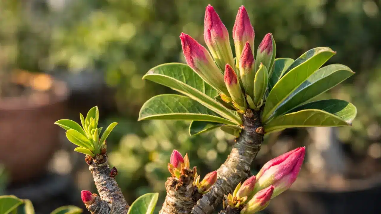 A rosa do deserto costuma surpreender cultivadores atentos quando começa a dar pequenos sinais de que a floração está próxima. Esses indícios aparecem dias ou semanas antes das flores surgirem, revelando mudanças visíveis na planta. Observar esses detalhes permite antecipar o espetáculo colorido que costuma transformar qualquer varanda ou jardim ensolarado.