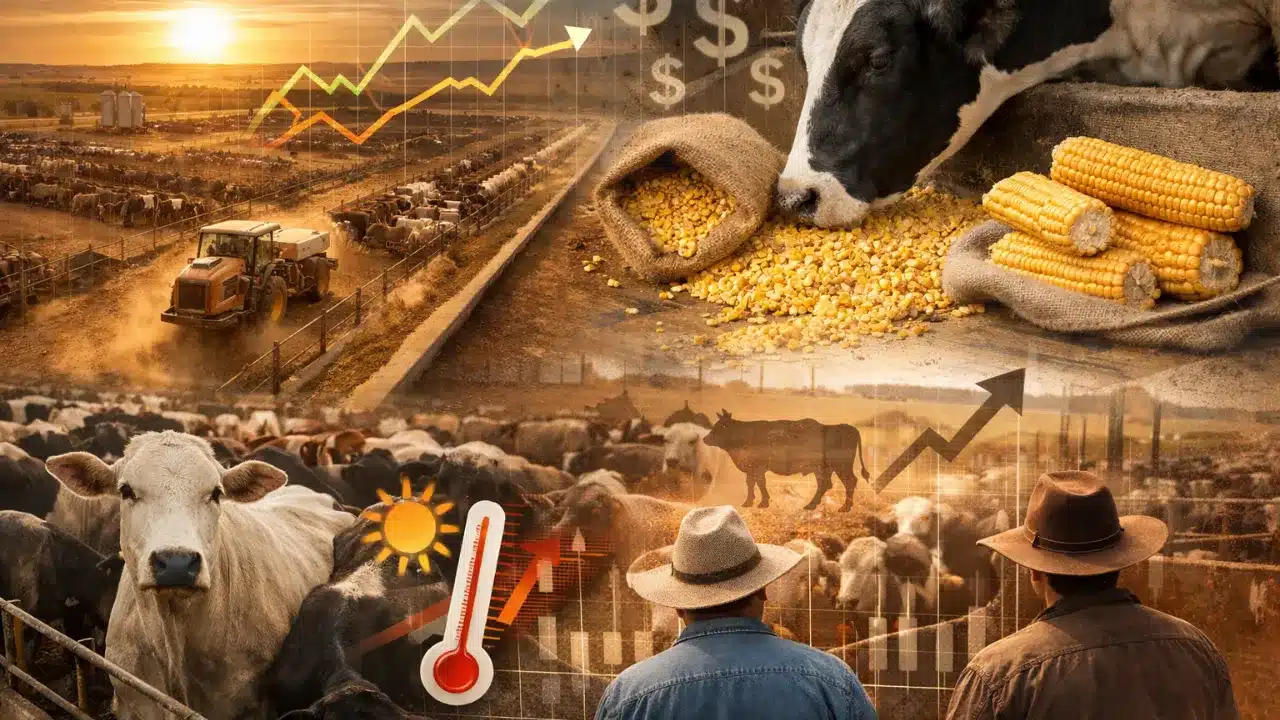 Grande parte da dieta do confinamento bovino utiliza milho como base energética. Quando o preço do grão sobe, o custo da ração aumenta imediatamente. Isso altera o ponto de equilíbrio da atividade.