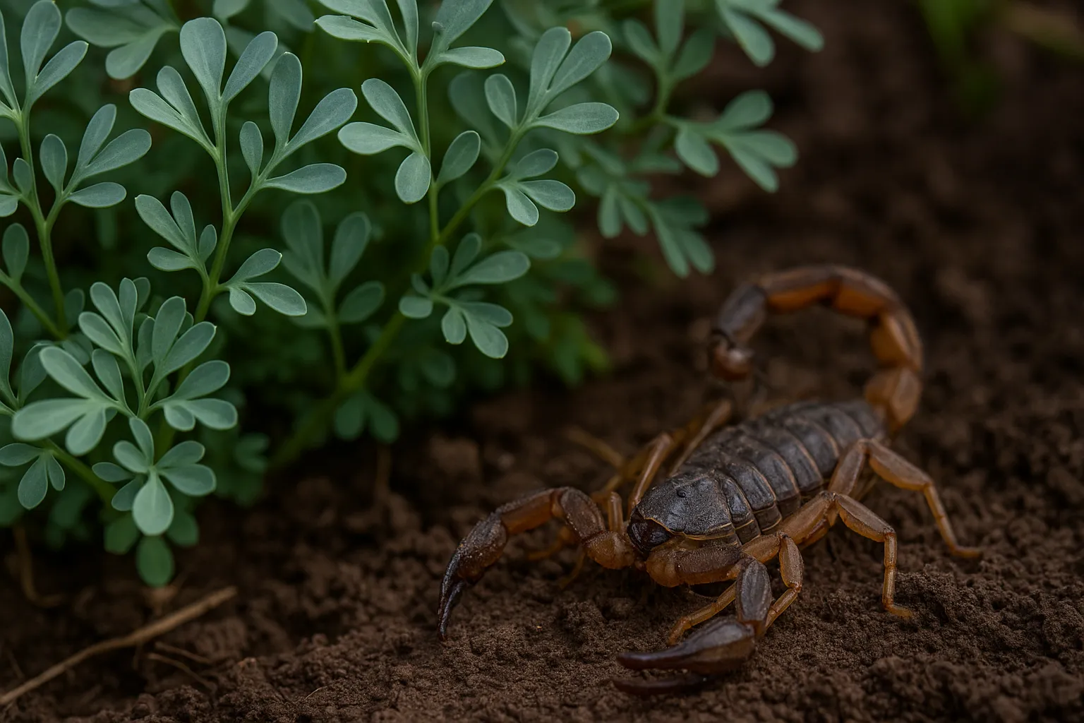 A arruda é uma planta conhecida por seu cheiro forte e uso tradicional como repelente de pragas. No caso dos escorpiões, ela age como um agente de dissuasão, pois o aroma intenso da planta interfere em seus sensores sensoriais, dificultando a orientação e fazendo com que evitem áreas onde ela está presente. Por ser natural, não representa risco tóxico para humanos e animais quando usada corretamente — uma vantagem em relação a produtos químicos.