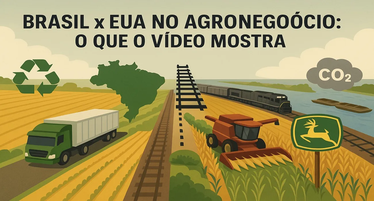 Brasil x EUA no agronegócio é o pano de fundo do vídeo: lá, trilhos e barcaças integram o corn belt; aqui, caminhões cruzam a BR‑163. O Brasil vence em safras, plantio direto e preservação; os EUA dominam a logística. Moral da história? Misturar o que fazemos bem com o que eles fazem melhor.