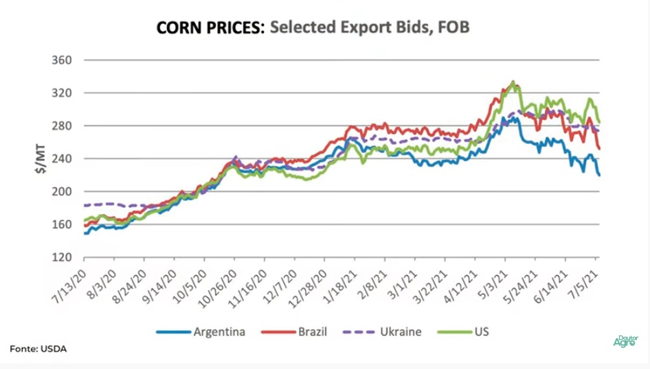 Atenção para a safra dos Estados Unidos e as condições das lavouras de milho e soja com aparentemente melhora no clima lá.