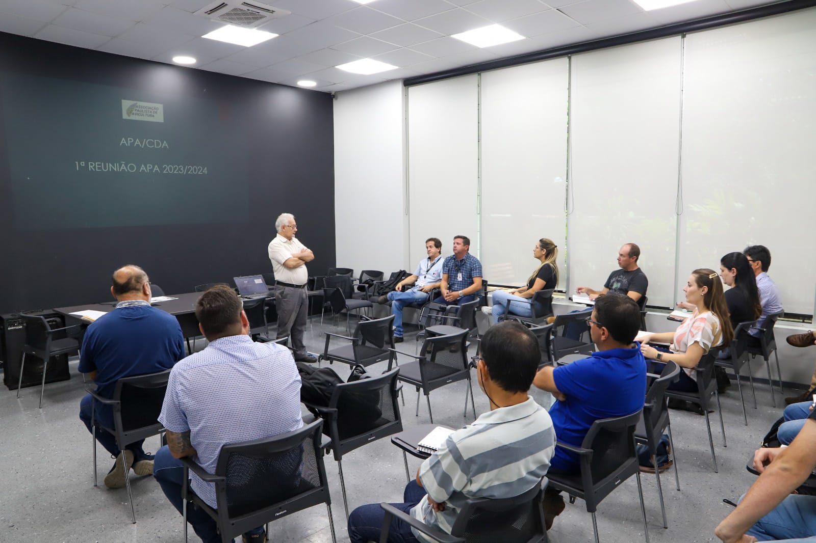 Durante a reunião, Paulo Blandino, médico veterinário e gerente do Programa Estadual de Sanidade Avícola (PESA), revisou junto aos veterinários da APA questões como registro de atividades, identificação de novos pontos focais para ações de vigilância e estabelecimento de metas para o próximo ano.
