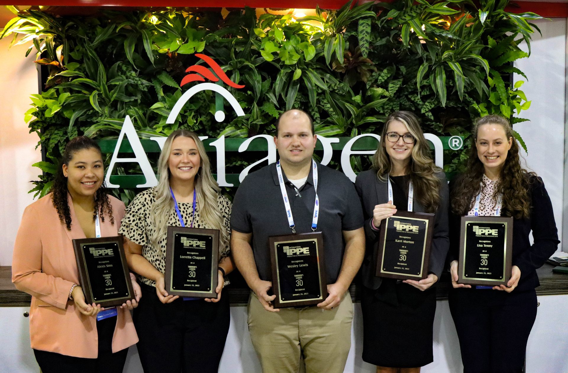 A Aviagen se orgulha de seus cinco colaboradores que foram reconhecidos com o prêmio IPPE “Jovens líderes com menos de 30 anos”. Esses jovens e promissores profissionais da Aviagen, com idades entre 21 e 29 anos, foram escolhidos por suas qualidades de liderança e comprometimento com a indústria. Além da experiência de participar da maior feira anual do setor no mundo, os vencedores receberam placas especiais de “Jovens líderes” em um café da manhã realizado em homenagem.