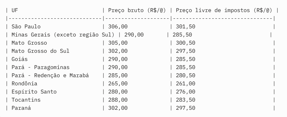 Enquanto alguns estados mantêm valores elevados, outros, como Rondônia (R$ 265,00 bruto), sentem mais o impacto da logística e menor demanda.