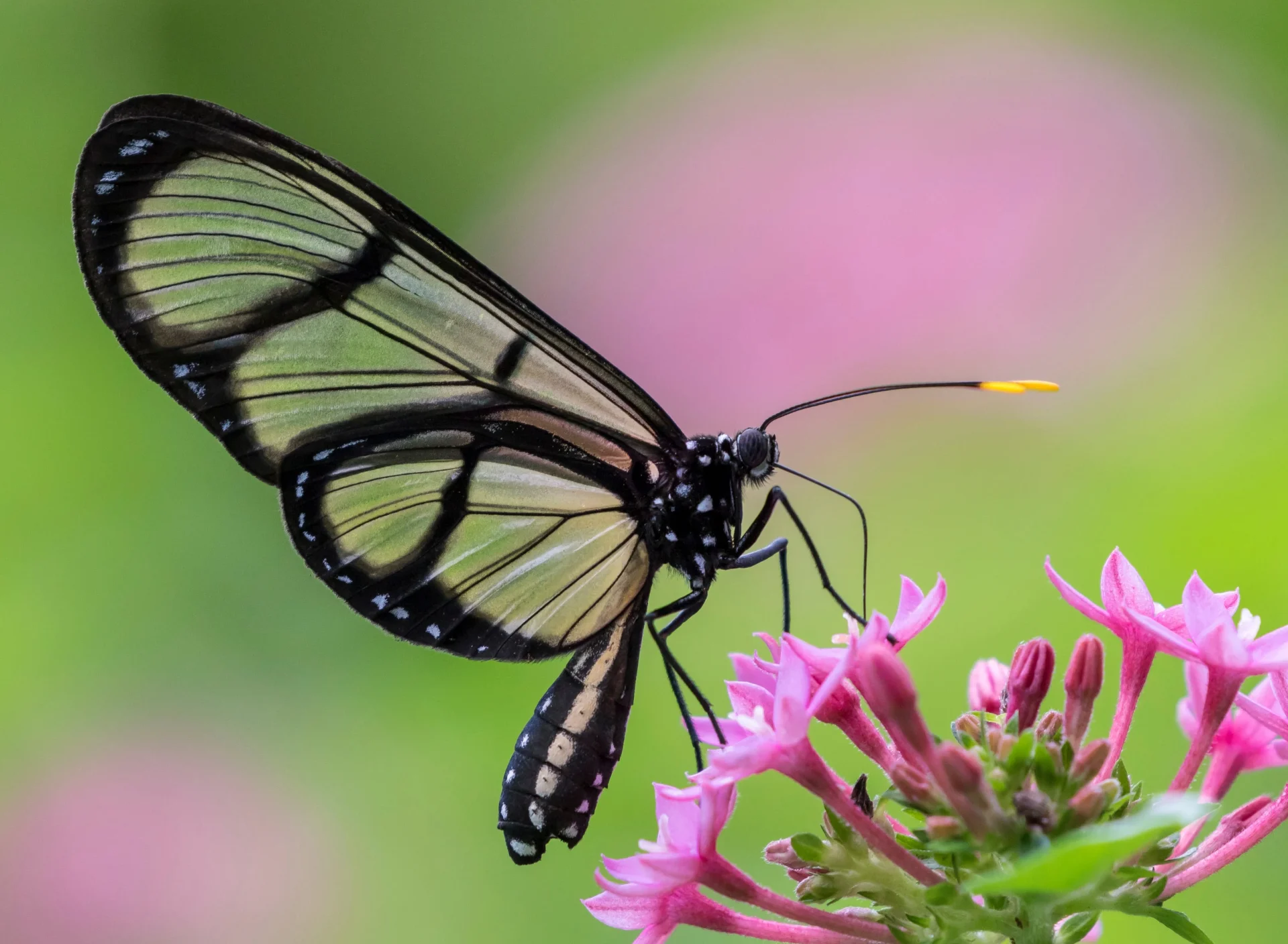 O aparelho bucal das borboletas, chamado espirotromba, é uma estrutura em forma de tubo que se desenrola para sugar líquidos como néctar e sumos vegetais.