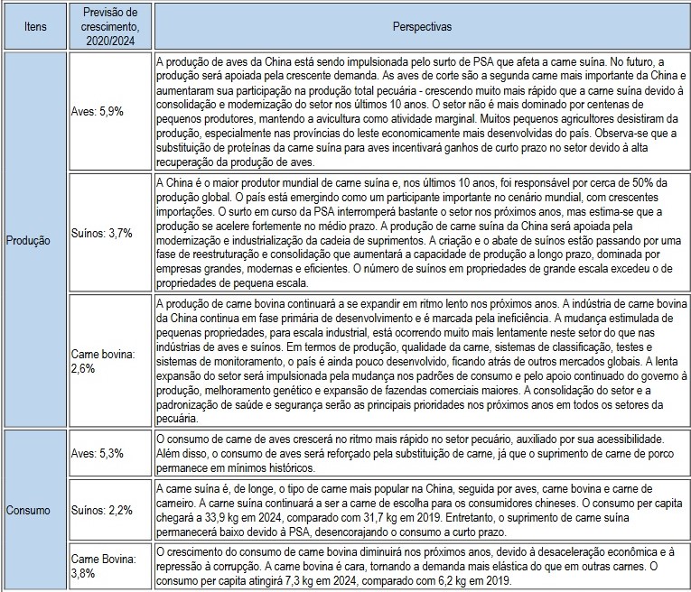 Tabela 6: Previsões de Produção e Consumo de Carnes: 2020 a 2024
