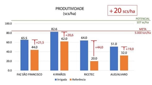 Nas áreas irrigadas por meio dessa técnica, os ganhos de produtividade chegaram a 20 sacas/ha em comparação às não irrigadas.