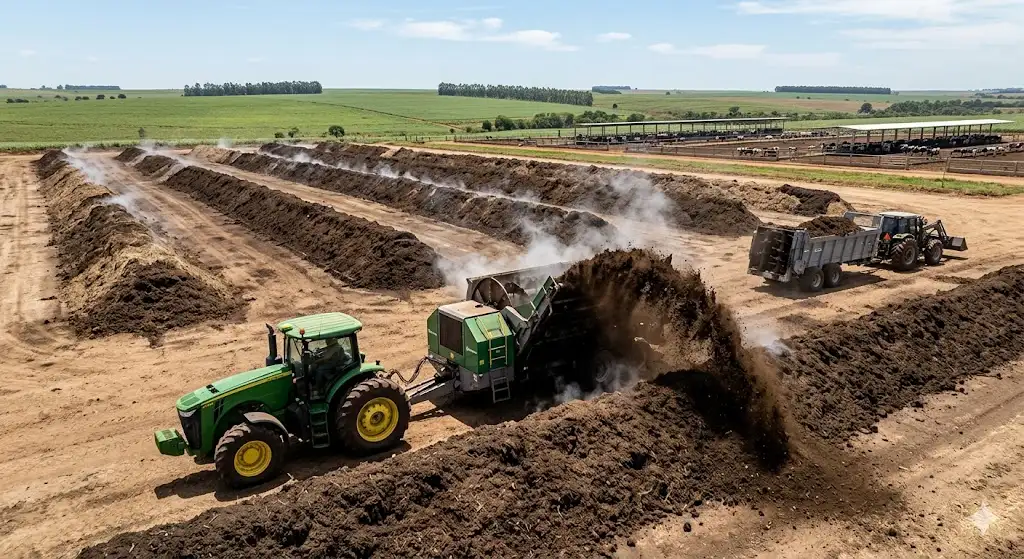 Compostagem de esterco bovino é o processo de transformação de resíduos orgânicos em adubo de alta qualidade, otimizando a ciclagem de nutrientes e reduzindo a dependência de insumos químicos externos na produção agropecuária moderna. Esta prática melhora significativamente a estrutura do solo e a rentabilidade do produtor.