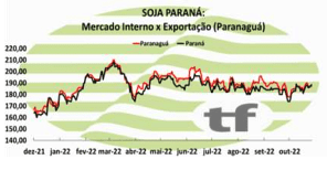 Mercado sul-mato-grossense segue com poucos volumes de venda. Com a queda de 0,95% em Chicago maior do que a alta de 0,14% do dólar, os preços finais no estado acabaram por se desvalorizar, deixando o mercado vazio de negócios. Ademais, o processo de plantio da safra 2022/23 segue firme e já se estima que sua área cresceu em relação ao ciclo anterior em 2,5%, a produtividade estimada é de 53,44 sacas/ha. O que tem atrapalhado a comercialização um pouco é o foco no plantio que foi atrasado por conta das chuvas na semana passada, além disso, o fato de que a comercialização começou um mês atrasada nesse ano também cria uma falta perspectiva de que segue a um ritmo mais lento.