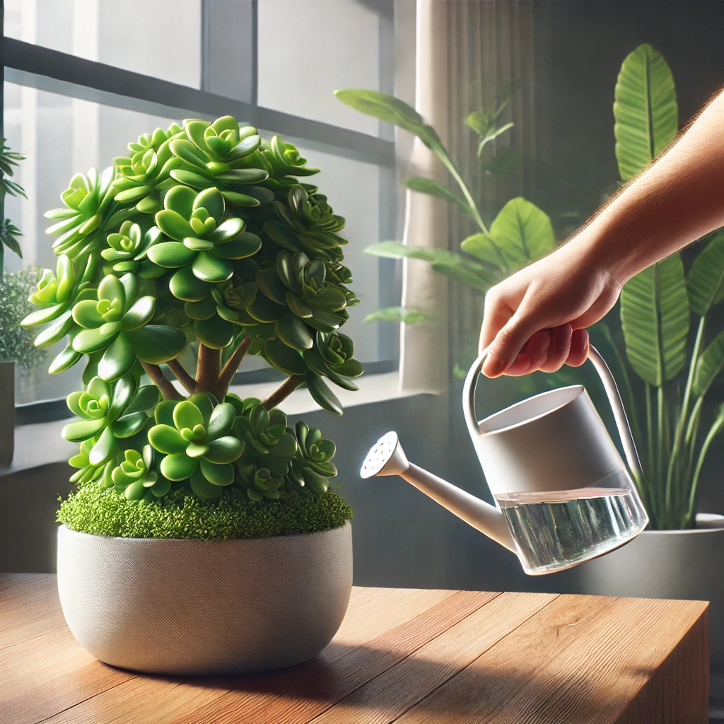 A planta jade armazena água em suas folhas grossas, o que a torna altamente resistente à seca. Porém, o excesso de água pode ser prejudicial.