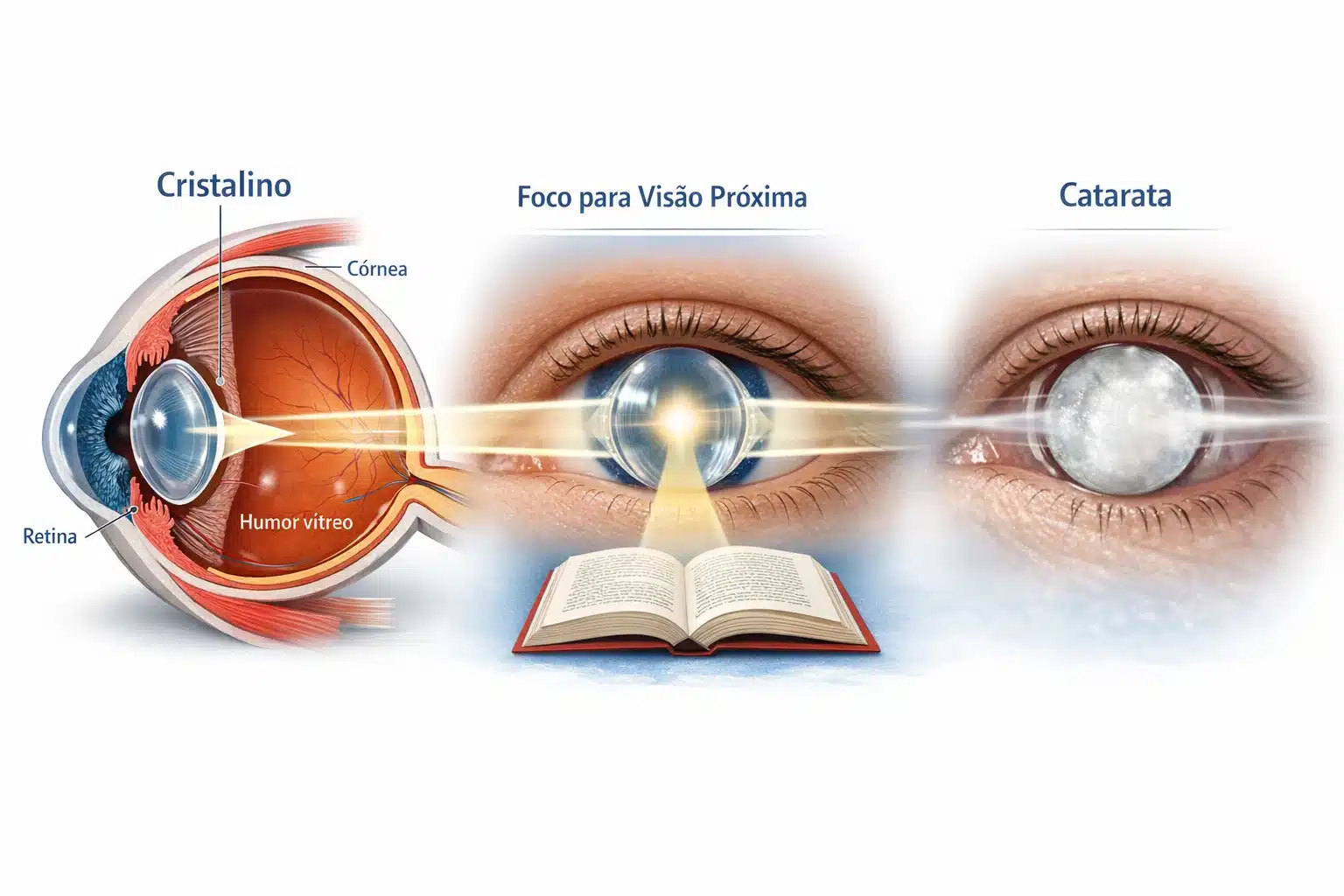 O cristalino não enxerga por conta própria. Ele molda a luz para que o cérebro interprete o mundo com clareza. Quando endurece ou perde transparência, a imagem não desaparece totalmente, mas perde definição. Isso reforça a importância de cuidados preventivos e acompanhamento oftalmológico regular.