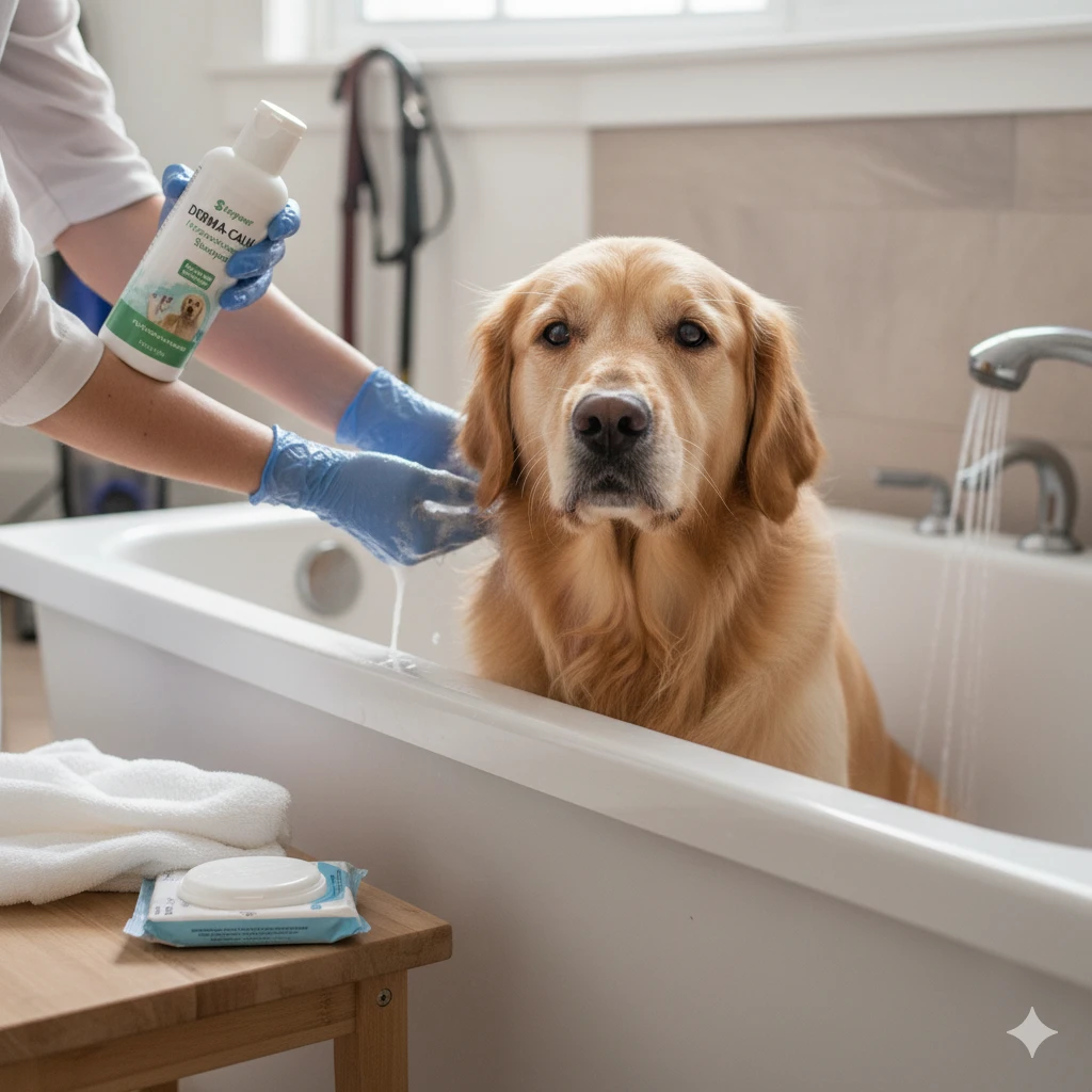 Banhos com produtos dermatológicos específicos, recomendados pelo veterinário, ajudam a remover alérgenos e a acalmar a pele irritada. A frequência deve ser definida pelo profissional, pois banhos em excesso ou com produtos inadequados podem prejudicar a barreira cutânea. Após o banho, a secagem completa é vital, já que a umidade favorece a proliferação de microrganismos.