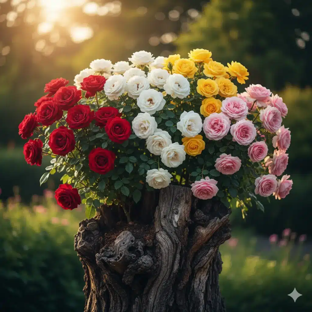 Os benefícios vão além da simples jardinagem. Um enxerto de rosa permite criar uma árvore multicolorida, com flores brancas, vermelhas e amarelas brotando do mesmo tronco. É a solução perfeita para quem tem pouco espaço, como varandas de apartamento, substituindo vários vasos por uma única planta espetacular. O resultado final é uma explosão de vida que transforma um simples jardim na “Árvore Mágica do Subúrbio”, provando que qualquer um pode criar recomeços que florescem. Essa técnica de enxerto de rosa é um verdadeiro cheat code da natureza.