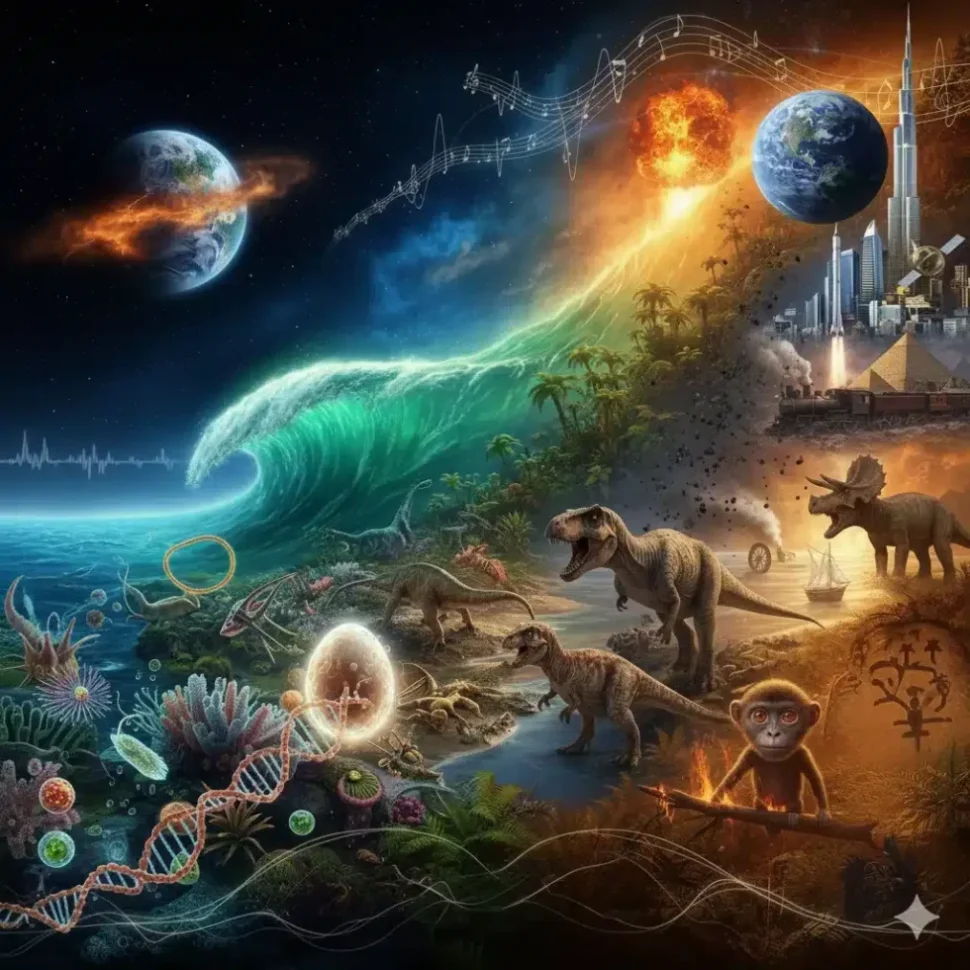 A animação viral “JAMES WEBB no X” comprime 4 bilhões de anos da Evolução da Vida na Terra em apenas 240 segundos. Este vídeo autoral, criado por @thebrainmaze, usa 38 terabytes de simulações e tecnologias avançadas (como Unreal Engine 5 e IA) para transformar a complexa história da Evolução da Vida na Terra em uma “odisseia pessoal”. Desde as primeiras protocélulas até o surgimento da consciência humana, a obra é um convite para o espectador revisitar a própria origem e refletir sobre o futuro.