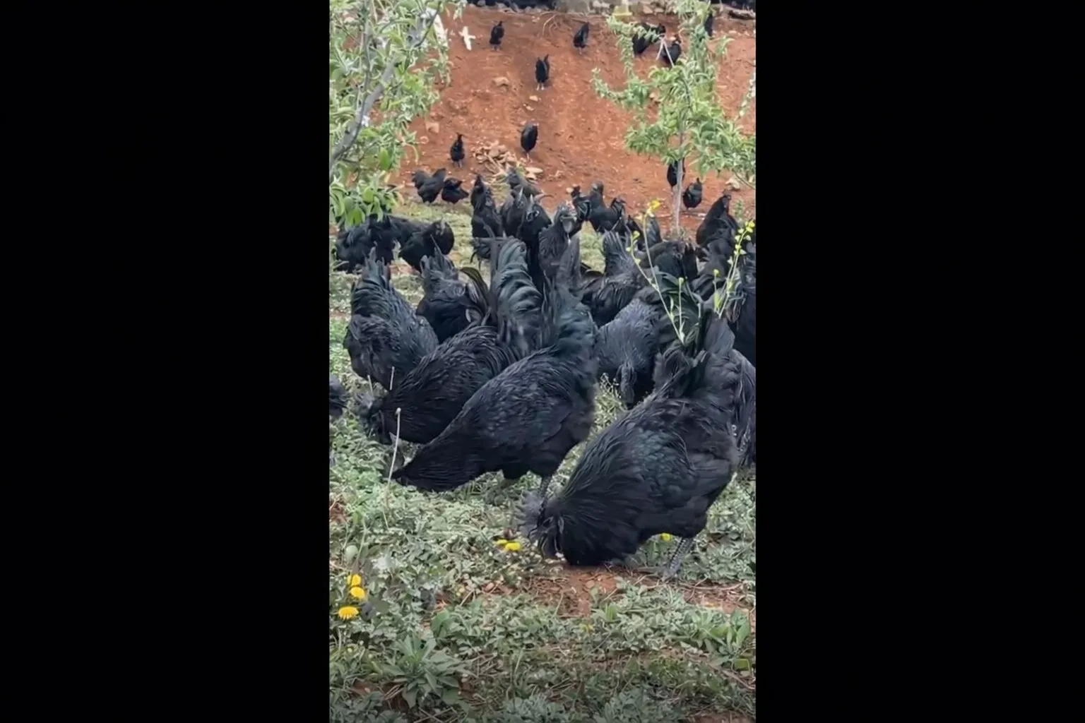 Em regiões montanhosas da China e do Sudeste Asiático, milhões de galinhas pretas são criadas em sistemas semisselvagens. Nessas áreas, as aves têm acesso à forragem natural, alimentando-se de insetos, grama e grãos disponíveis no ambiente.