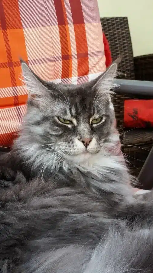 O Maine Coon é uma raça americana tradicional, originária do estado do Maine. Surgiu no século XIX a partir do cruzamento de gatos de pelo longo trazidos por marinheiros com gatos locais adaptados ao frio rigoroso. Seu nome “Coon” faz referência à cauda espessa, parecida com a de um guaxinim. Essa raça é famosa pelo tamanho imenso e resistência.