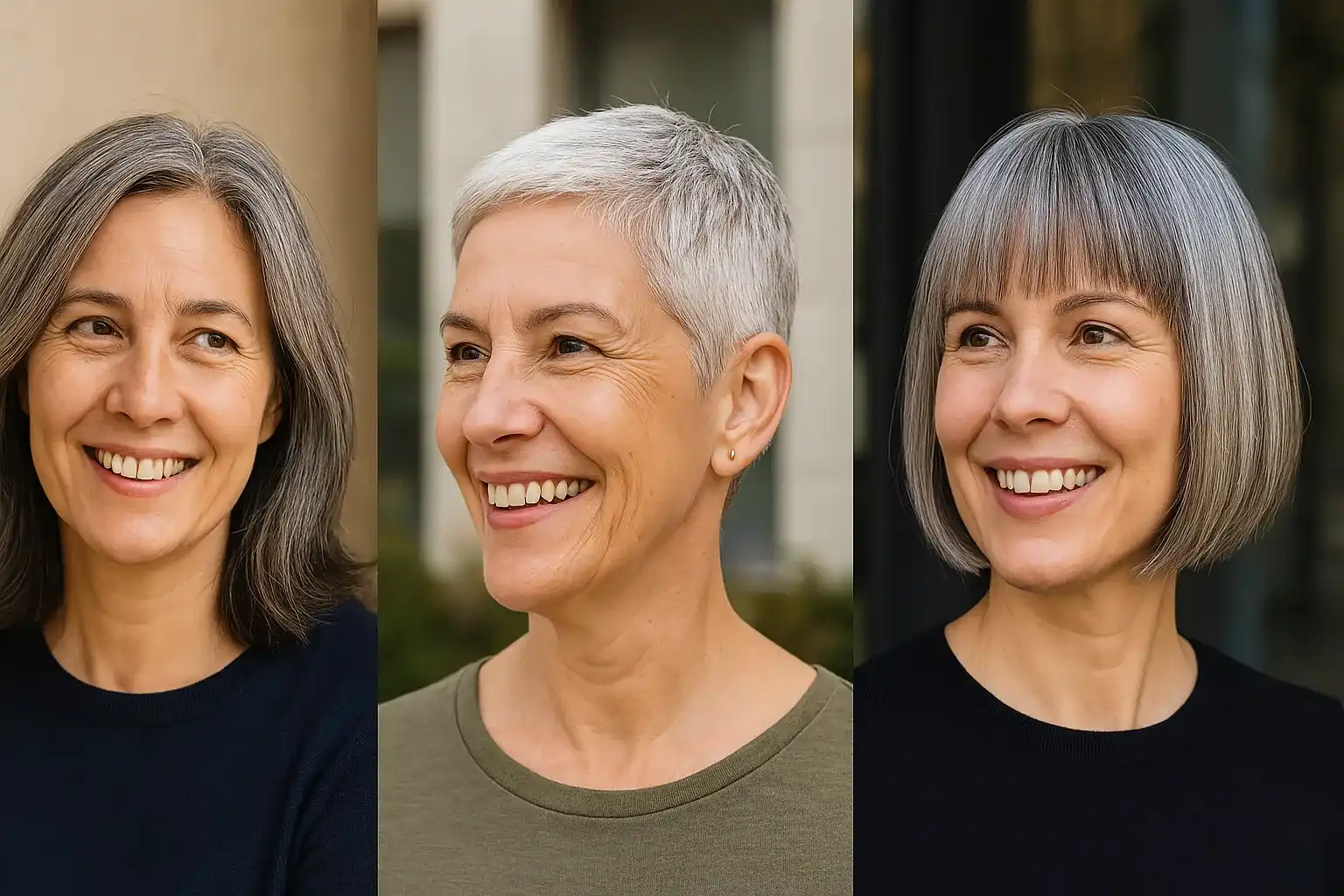 Cabelos grisalhos são lindos por natureza, e quando combinados com um corte adequado, se tornam verdadeiras ferramentas de autoestima. O segredo para um visual rejuvenescido está na estrutura do corte, no movimento dos fios e na valorização das características do rosto.