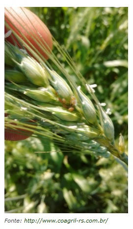 Dependendo da época do ano e da região de cultivo, várias espécies de pulgões podem ocorrer nas culturas de inverno como trigo, aveia, centeio, cevada, triticale e outras gramíneas. As espécies mais comuns são o pulgão verde dos cereais (Schizaphis graminum), o pulgão do colmo do trigo ou pulgão da aveia (Rhopalosiphum padi), o pulgão da folha do trigo (Metopolophium dirhodum) e o pulgão da espiga do trigo (Sitobion avenae) (Pereira et al., 2012). Os pulgões são insetos pequenos que medem 1,5 a 3,0 mm, de corpo mole e piriforme, e apresentam coloração geralmente verde, com diferentes tonalidades dependendo da espécie.