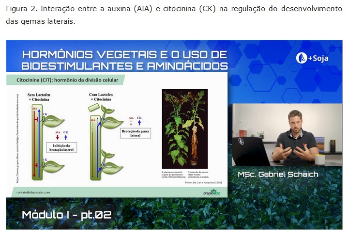 Relação da citocinina e a arquitetura de plantas. O adequado balanço hormonal é tão importante quanto o nutricional para o bom crescimento e desenvolvimento vegetal resultando em boa produtividade de culturas como a soja. Conforme observado por Bertolin et al. (2010), o uso de bioestimulantes contendo hormônios vegetais proporciona incremento no número de vagens por planta e produtividade de grãos tanto em aplicação via sementes quanto via foliar.
