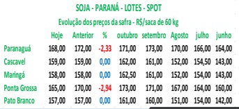 PARANÁ: Preços recuam com queda do dólar e de Chicago