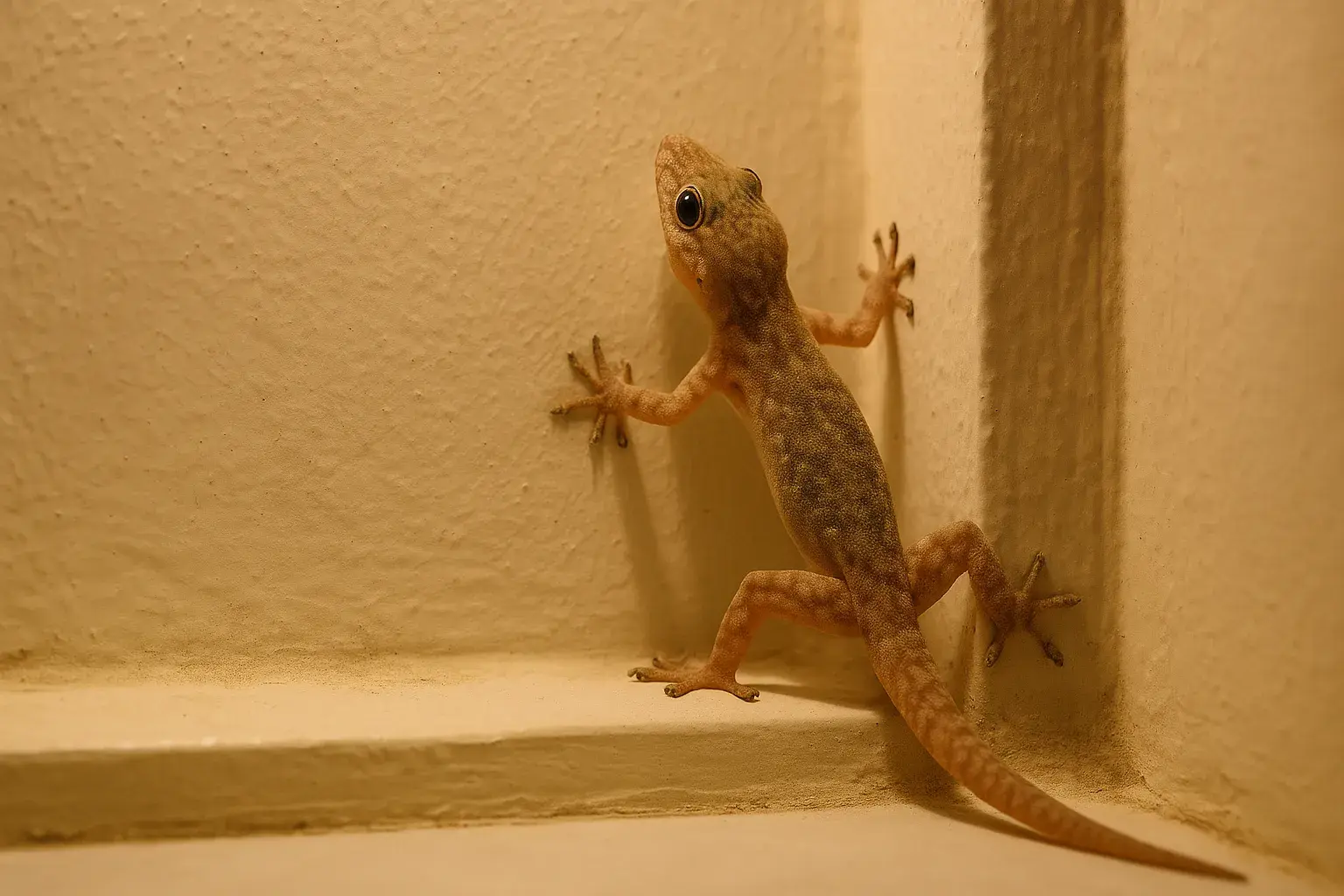 Lagartixas são ectotérmicas, ou seja, sua temperatura corporal depende do ambiente. Ambientes internos costumam ser mais quentinhos e estáveis, especialmente durante as noites frias ou em estações com variação térmica. Pisos de cerâmica, paredes aquecidas e até aparelhos eletrônicos podem servir de abrigo térmico.