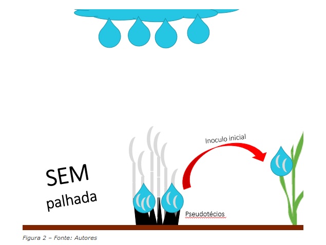 O nível de cobertura do solo pode ser uma ferramenta importante para o retardo da infecção inicial. A palhada depositada sobre o solo, impede com que os respingos de chuva auxiliem na migração do inoculo inicial para as folhas, diminuindo a taxa de progresso inicial (Figura 2).