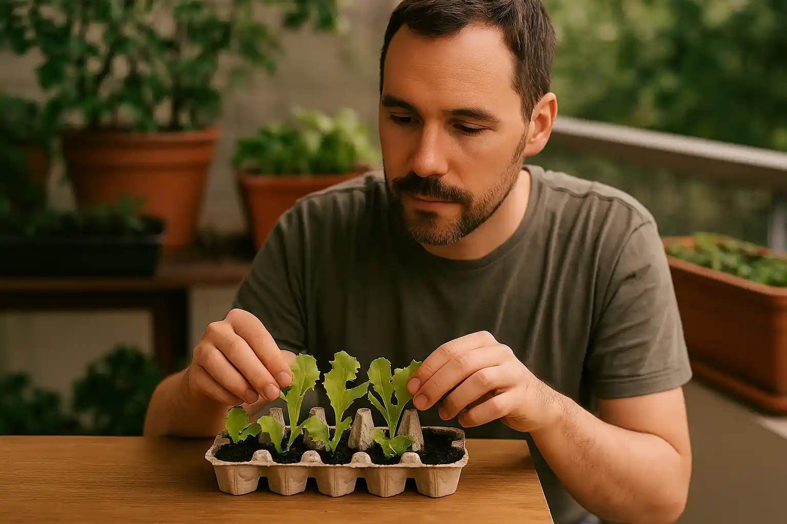 Como fazer mudas de alface com caixa de ovo reciclada - Imagem gerada por IA