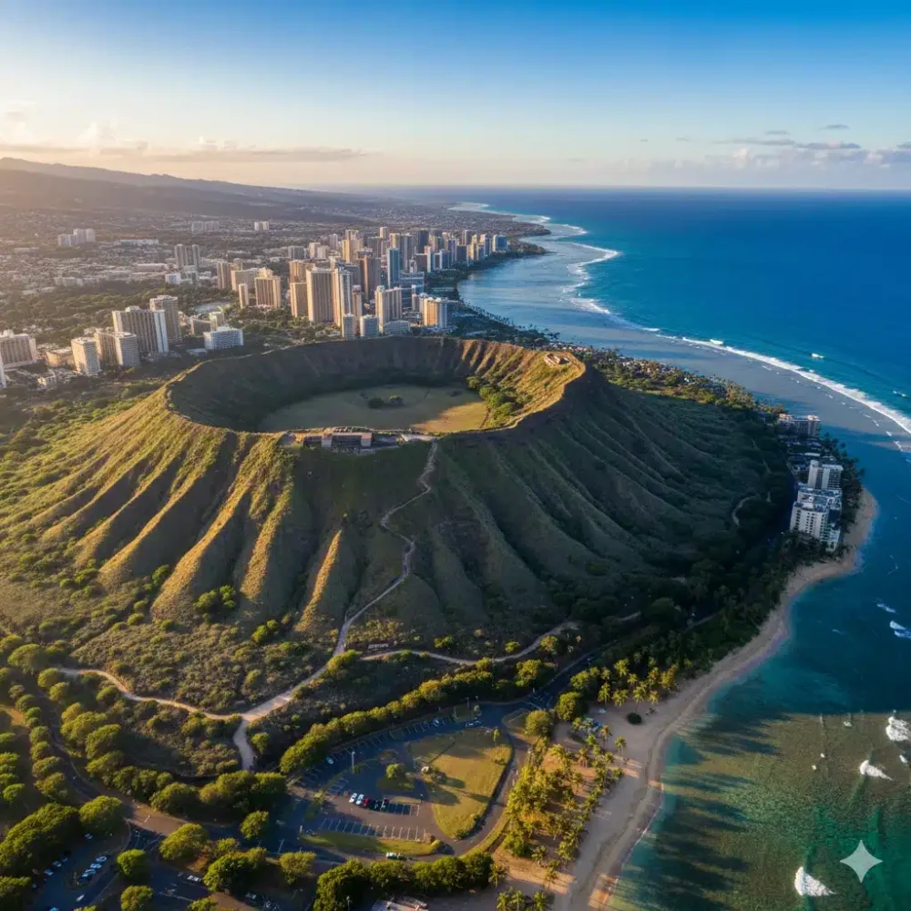 Cratera de Diamond Head é uma das formações geológicas mais famosas do mundo, localizada em Oʻahu, e representa um exemplo clássico de eficiência da natureza em criar ícones paisagísticos. Este cone de tufo, formado por erupções explosivas, atrai milhões de visitantes anualmente, sendo fundamental para a economia e a preservação ambiental do Havaí.