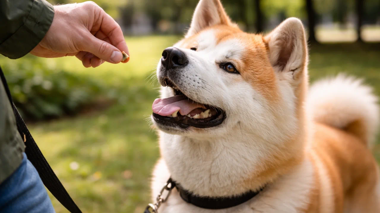 A dica é simples, mas eficaz: todo comando deve ter um propósito claro e uma consequência coerente (positiva ou negativa). Dizer “senta” e não agir diante da desobediência sinaliza que aquele comando é opcional — e o Akita aprende isso rápido.