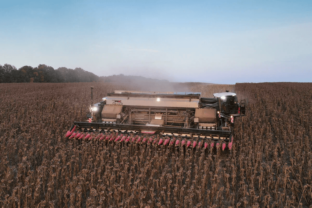 NEXAT System, tractor três em um; planta, pulveriza e colhe