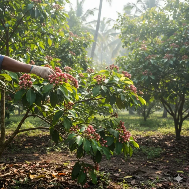 O momento mais esperado ocorre após o quarto ou quinto ano. A colheita é um trabalho minucioso, pois deve ser feita manualmente quando os botões florais apresentam uma cor rosada, mas antes de abrirem totalmente. Se a flor abrir, o valor comercial do cravo cai drasticamente, pois ele perde os óleos essenciais que garantem o aroma característico.