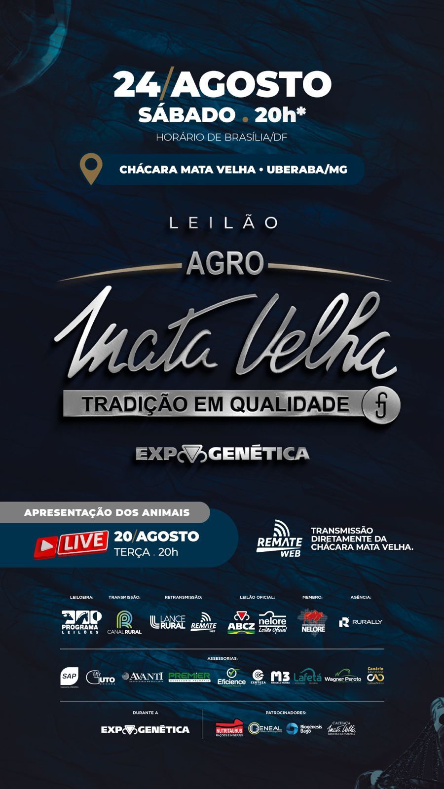 Entre os dias 16 e 24 de agosto, o shopping e o leilão da Chácara Mata Velha ocorrerão durante a 17ª edição da Expogenética, em Uberaba (MG). O evento começará diariamente às 9 horas (horário de Brasília), com o leilão programado para o dia 24, às 20 horas.