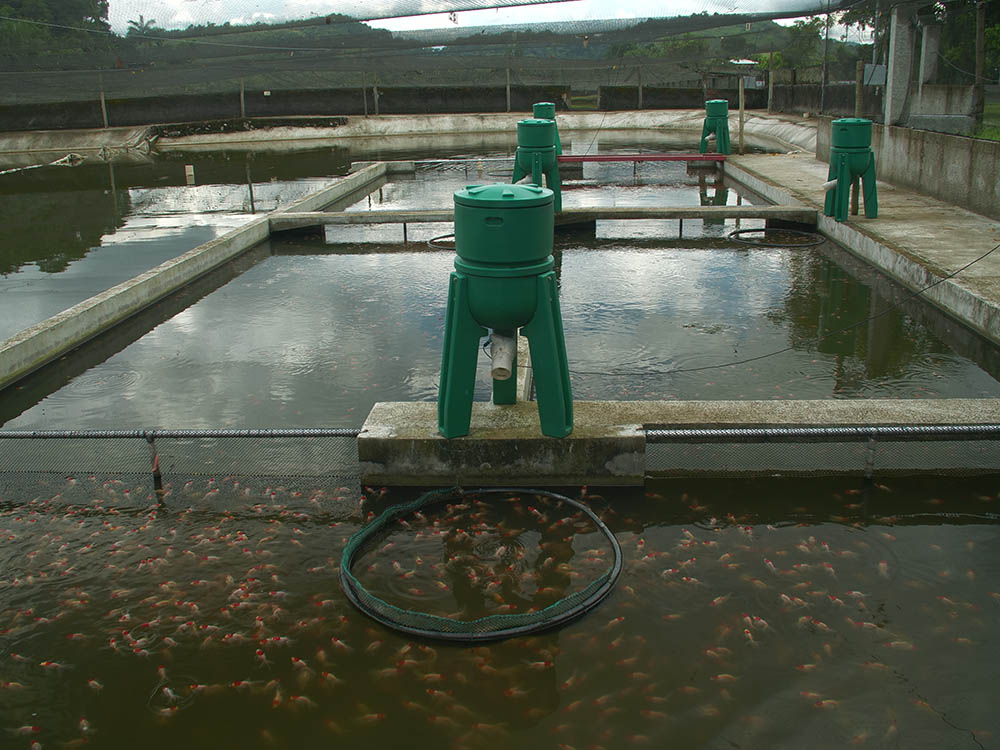 Na propriedade localizada no município de Cachoeiras de Macacu (RJ), região conhecida por ser polo produtor de peixes ornamentais, a alimentação automática é utilizada na criação de carpas a quase dois anos.