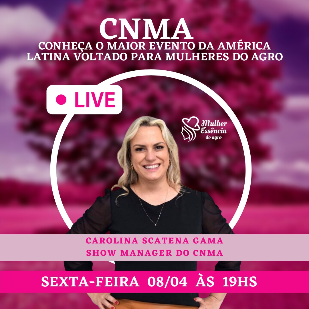 A show manager da 7ª edição do Congresso Nacional das Mulheres do Agro – CNMA Carolina Gama, participa nesta sexta-feira, 08 de abril, às 19h, de uma live com a representante do grupo feminino “Mulheres Essência do Agro” Edineia Becker, também embaixadora da atual edição do evento representando a região Sul do País.