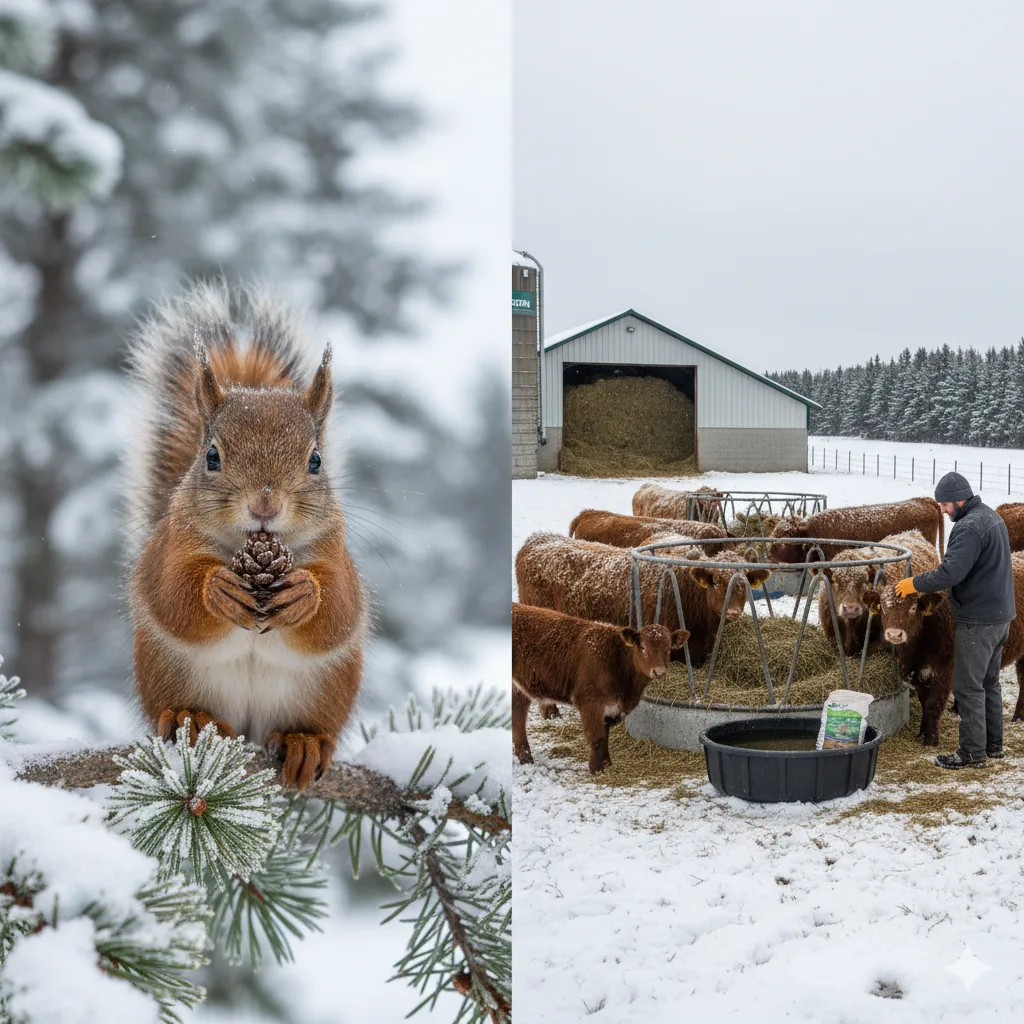 No coração das paisagens invernais, o desafio da sobrevivência toca tanto a vida selvagem, como o esquilo faminto na neve, quanto o gado nas fazendas. Para o produtor rural, o inverno não é apenas uma estação fria, mas um período crítico que exige um ajuste rigoroso no manejo: a Nutrição Animal no Inverno é o fator determinante entre a perda de peso do rebanho e a manutenção da produtividade. Este artigo detalha as estratégias nutricionais mais eficazes para proteger seu gado contra os impactos do frio, garantindo saúde e desempenho superior em uma das épocas mais desafiadoras do ano.