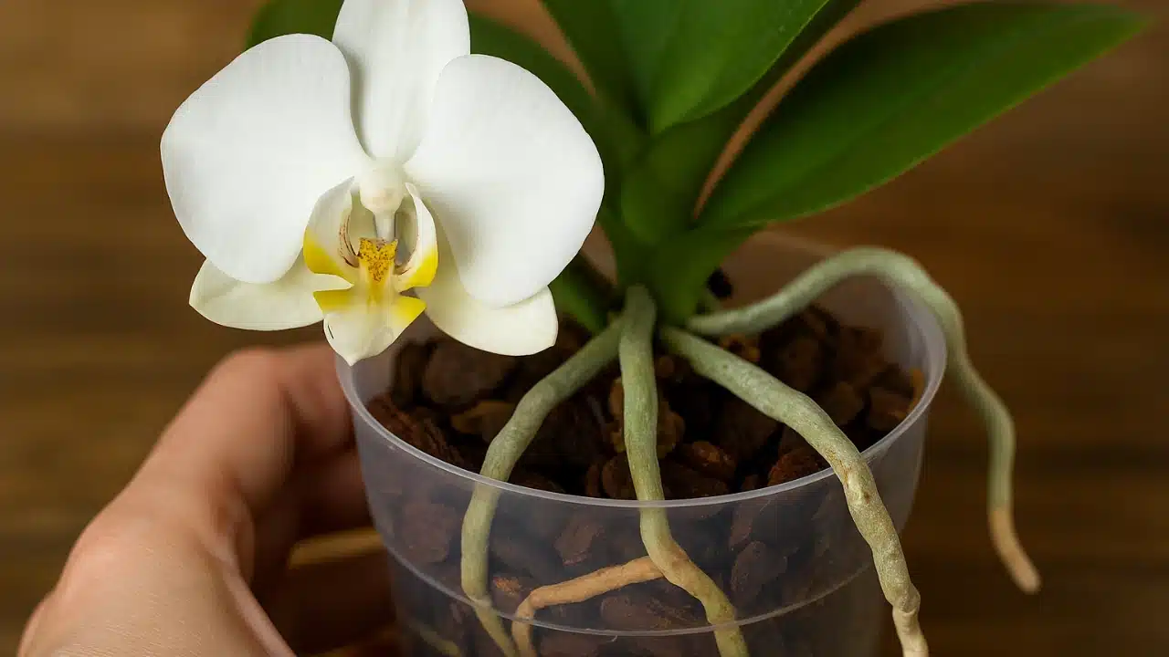 Outra dica é usar vasos transparentes. Eles permitem observar a coloração das raízes: verdes indicam umidade adequada; acinzentadas, sinal de sede. Já raízes escuras, moles ou pretas são indícios de apodrecimento, geralmente causado por excesso de água. Prevenir isso é muito mais simples do que parece — basta seguir um método simples e eficaz.