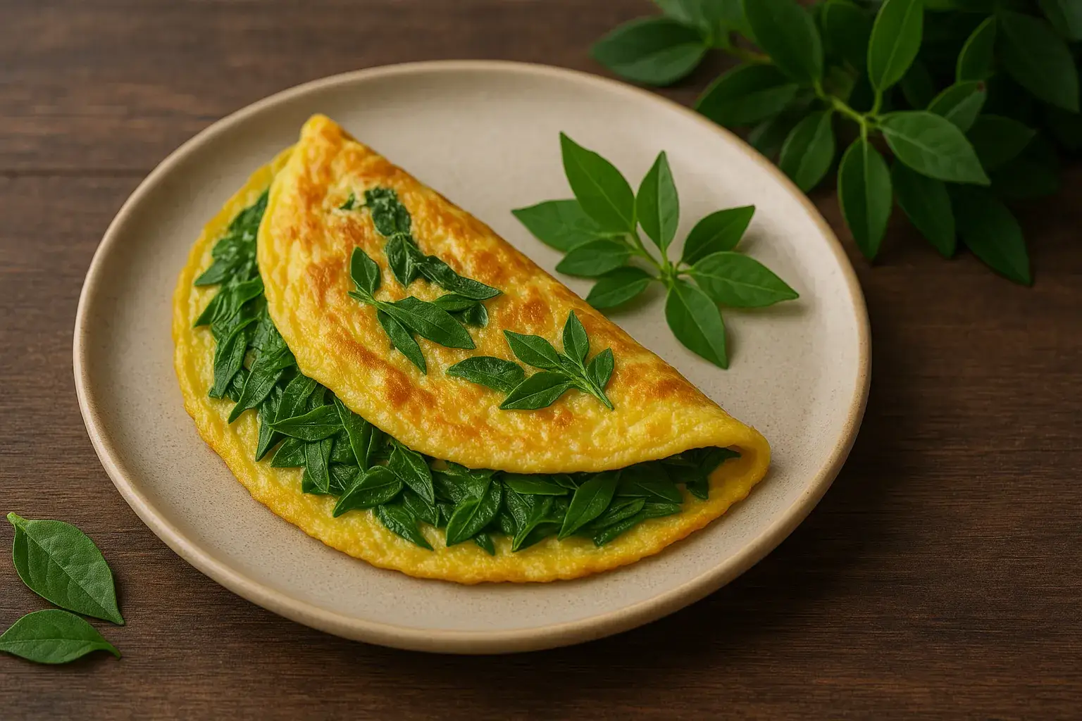 Bata 2 ovos com uma pitada de sal, junte folhas picadas e uma colher de queijo ralado. Frite em frigideira untada. Fica leve, saboroso e muito saudável.