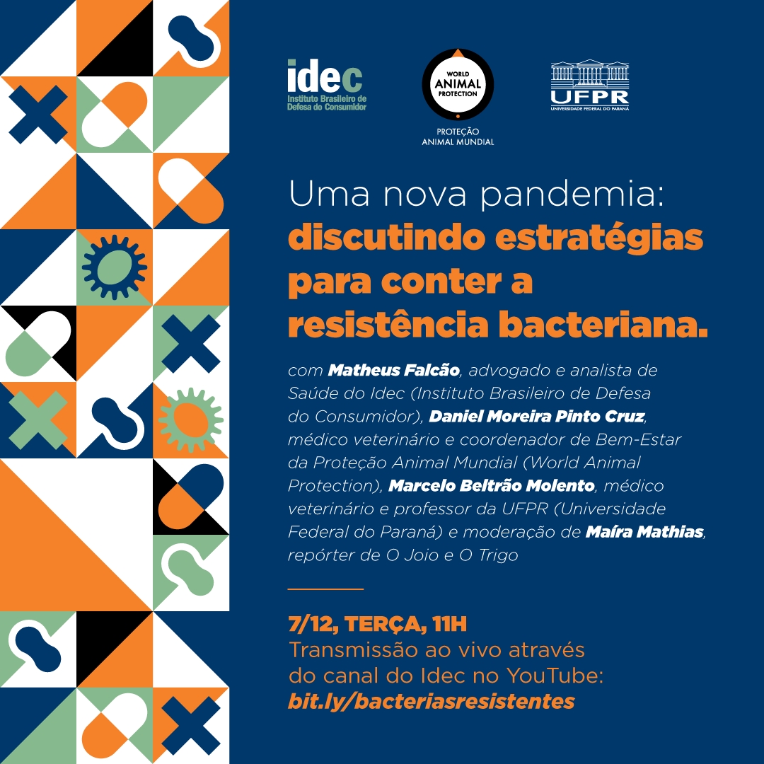 A transmissão ao vivo será às 11h através do canal do Idec no Youtube. Clique aqui para acessar a página do evento: bit.ly/bacteriasresistentes
