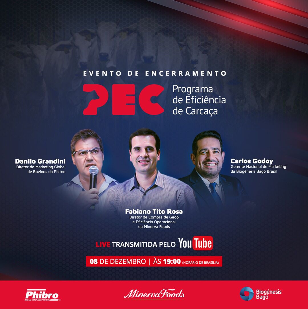 “Estamos finalizando a terceira edição do PEC com a sensação de dever cumprido. Mesmo com os desafios da pandemia, concluímos uma nova etapa deste projeto fantástico, criado para auxiliar os pecuaristas a melhorar os seus índices zootécnicos e produzir com mais eficiência para atender às necessidades do mercado interno e global”, afirma Danilo Grandini, diretor de marketing global de bovinos da Phibro, que participará da live.