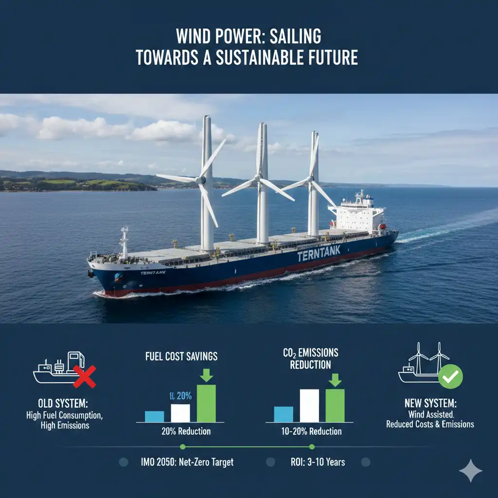 Apesar dos benefícios, a transição para a propulsão a vento exige adaptações significativas na infraestrutura. Portos ao redor do mundo precisam estar preparados para receber navios com estruturas que podem chegar a 35 metros de altura acima do convés. Isso afeta a logística de carregamento e descarregamento, exigindo guindastes que operem sem colidir com as velas ou rotores. No entanto, muitas dessas tecnologias são projetadas para serem dobráveis ou retráteis, minimizando o impacto durante as manobras em terminais portuários.