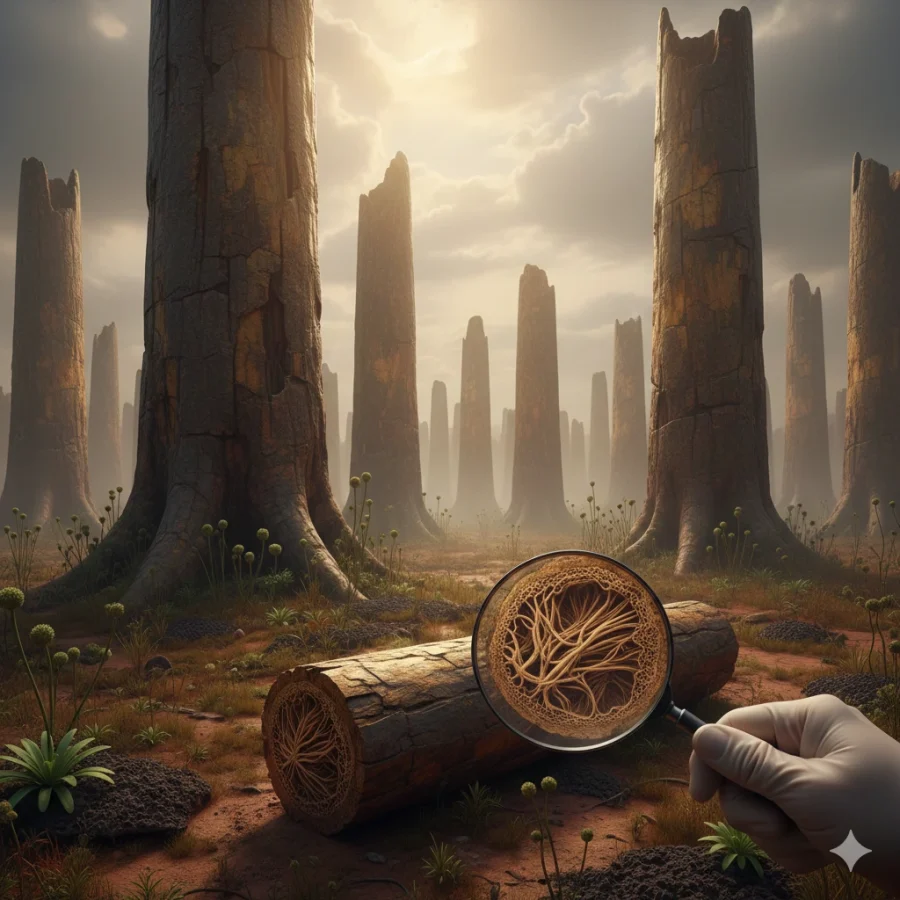 Imagine caminhar por um cenário desolador há mais de 400 milhões de anos e encontrar estruturas verticais de oito metros de altura, sem folhas, flores ou galhos. Esse era o mundo onde o Prototaxites reinava como a maior estrutura biológica em terra firme. Por mais de um século, pesquisadores tentaram rotular esse fóssil dentro das categorias que conhecemos hoje, mas a natureza parece ter seguido um caminho muito mais criativo e isolado durante o período Devoniano.