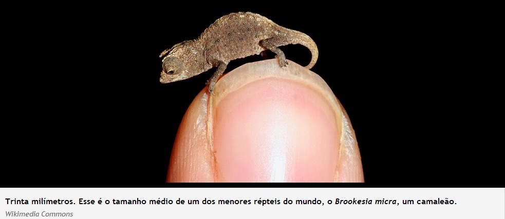 Trinta milímetros. Esse é o tamanho médio de um dos menores répteis do mundo, o Brookesia micra, um camaleão.