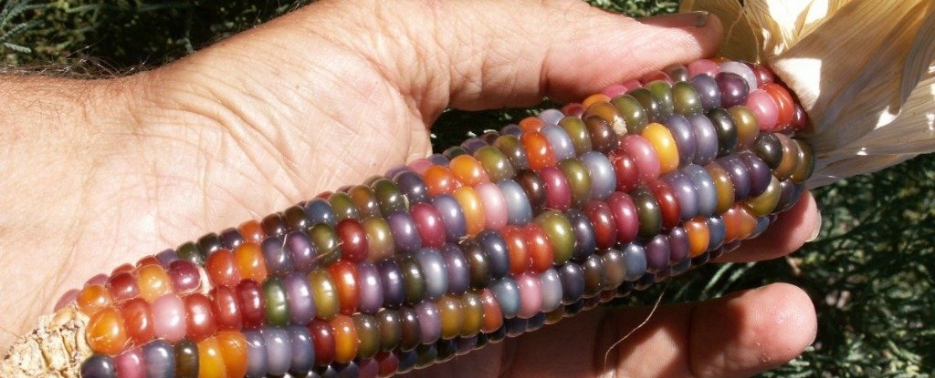 Essa espiga diferente foi cultivada por Greg Schoen, da Seeds Trust, uma companhia americana. Greg chamou seu experimento de Glass Gem Corn (milho gema de vidro).