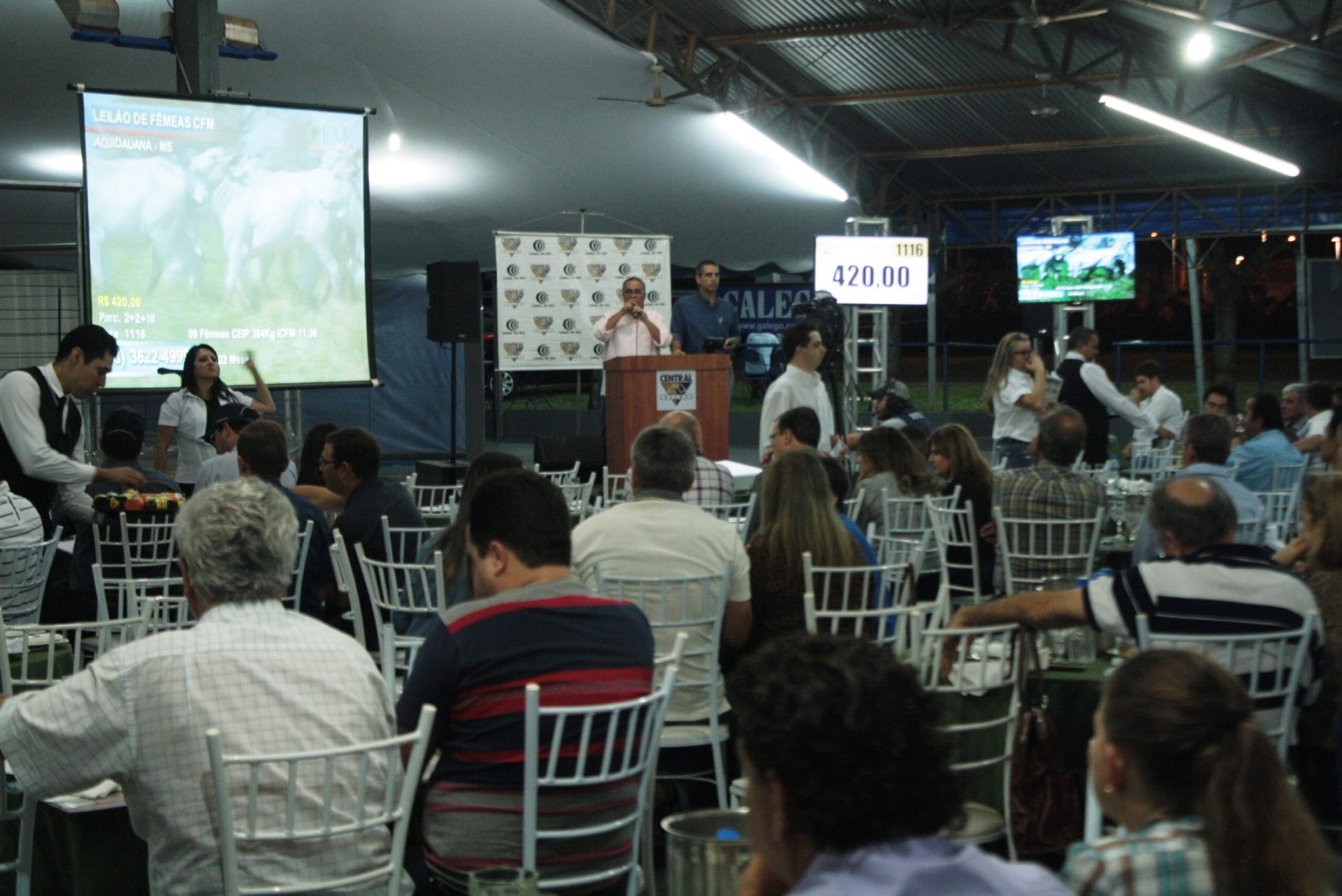 Começou muito bem o 17º Megaleilão Nelore CFM. Ontem (12.08) foram vendidas 200 vacas prenhes de até 7 anos de idade e 200 novilhas ao redor de 20 meses, prontas para a estação do final do ano. As novilhas foram vendidas pelo preço médio de R$ 4.000,00 e as vacas por R$ 4.800,00. No total, foram arrecadados mais de R$ 1,6 milhão.