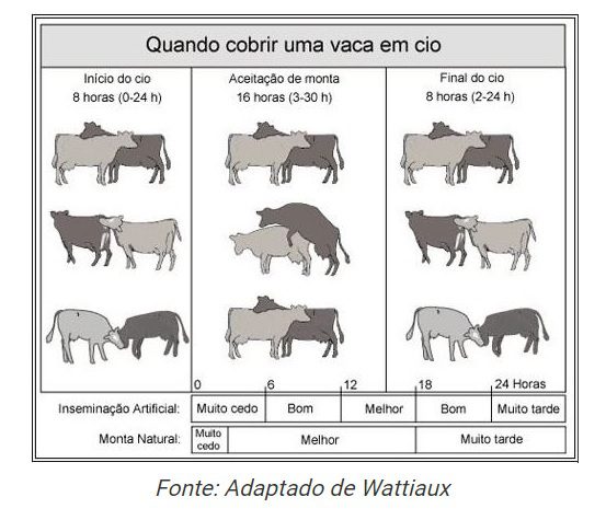 No caso de monta natural, a vaca e o touro podem ser colocados juntos algumas horas depois que a vaca aceitou monta até quando ela não aceita mais ser montada (Figura 1).