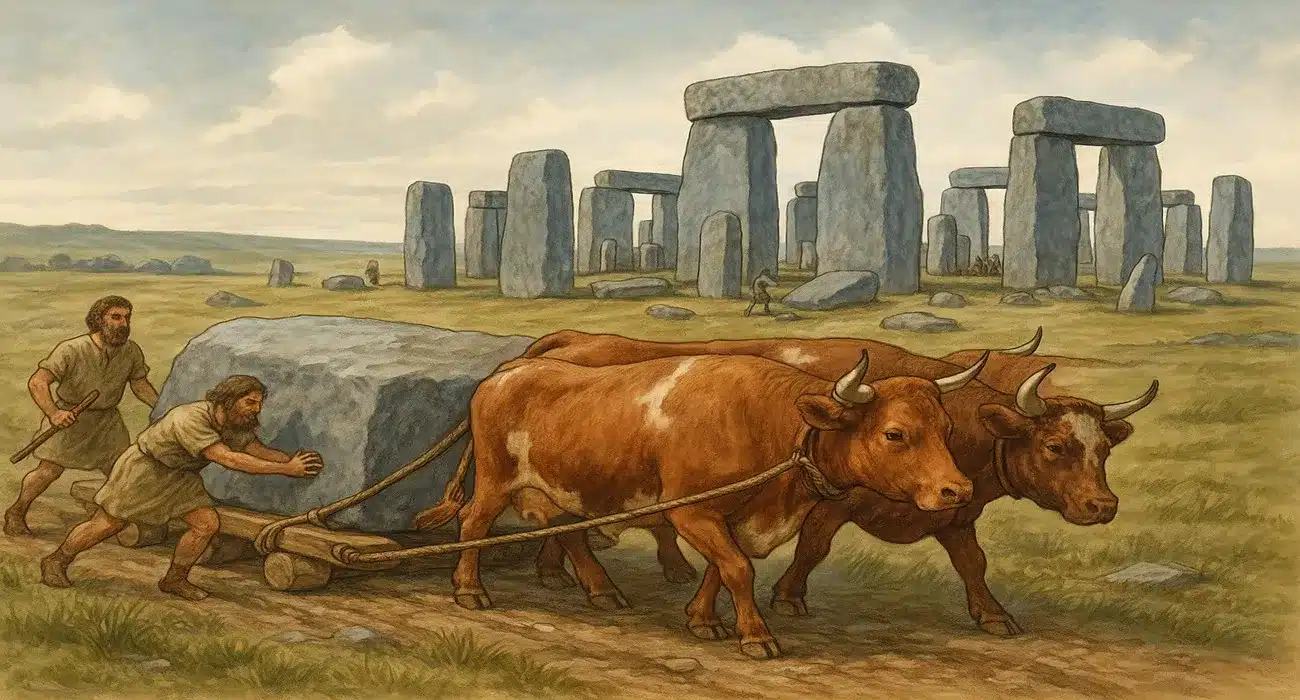 Até pouco tempo, acreditava-se que os homens pré-históricos transportaram as pedras apenas com troncos e cordas. No entanto, a nova hipótese mostra que o gado pode ter sido usado como força de tração — algo que, em termos práticos, teria reduzido o esforço humano e acelerado o processo.