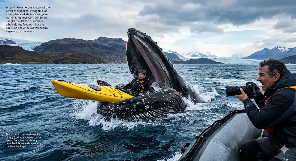 A baleia-jubarte protagonizou uma cena impressionante no Estreito de Magalhães ao engolir acidentalmente um jovem em um caiaque. O registro viral mostra o momento exato do engolfamento e a subsequente ejeção da vítima, que saiu ilesa do encontro inesperado com o gigante marinho.