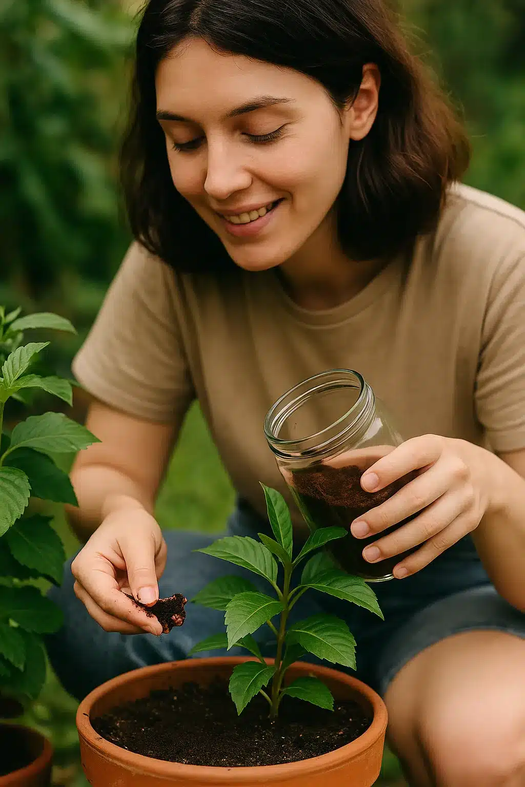 Seca, misturada ao solo ou compostagem, a borra de café é um gesto sustentável que nutre e protege suas plantas, dando nova vida ao que antes iria para o lixo.