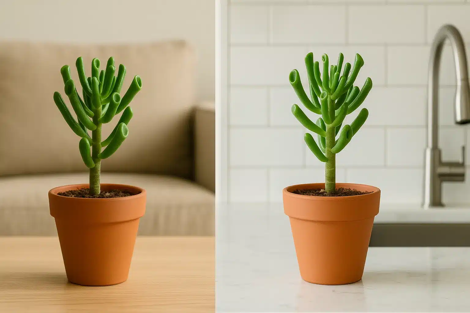 Outro erro comum é deixá-la em locais com sombra o dia inteiro. A falta de luz solar direta compromete o crescimento e pode deixar as folhas finas e esticadas.